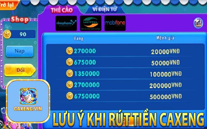 Khi thực hiện quá trình rút tiền từ tài khoản Caxeng, người chơi cần lưu ý một số điều sau: